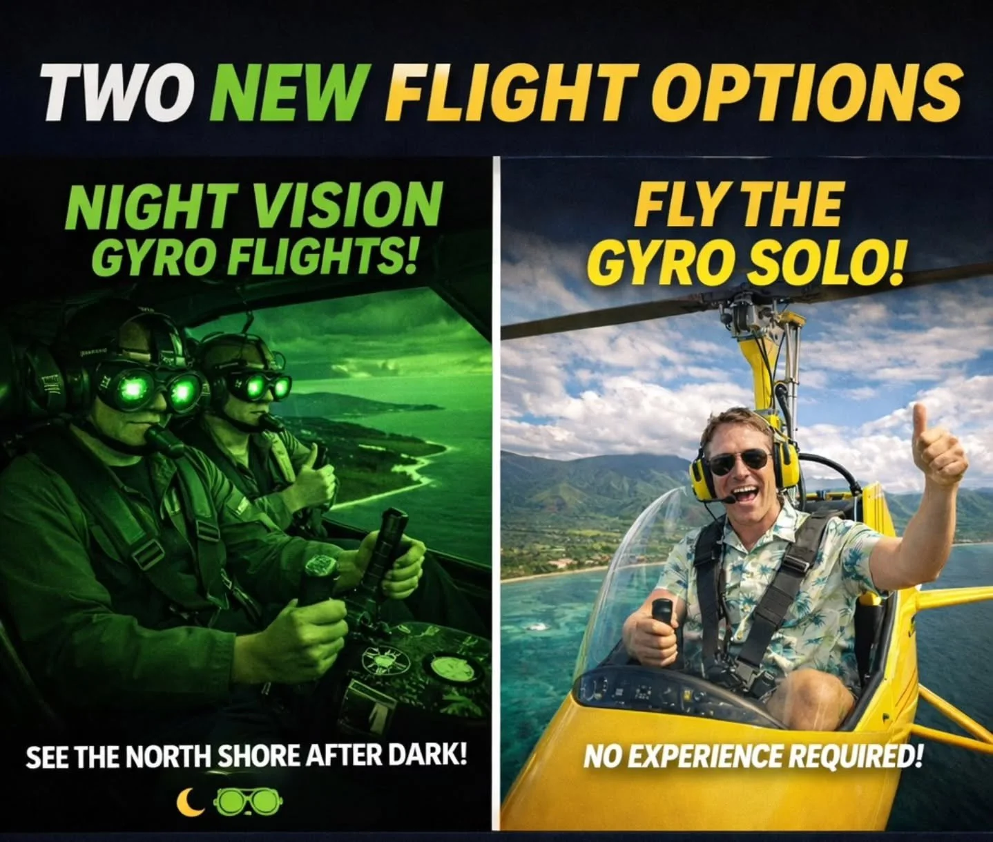 Ready to soar above the stunning North Shore of Oahu, Hawaii in a Gyroplane? Book your session now and experience the thrill of a lifetime!